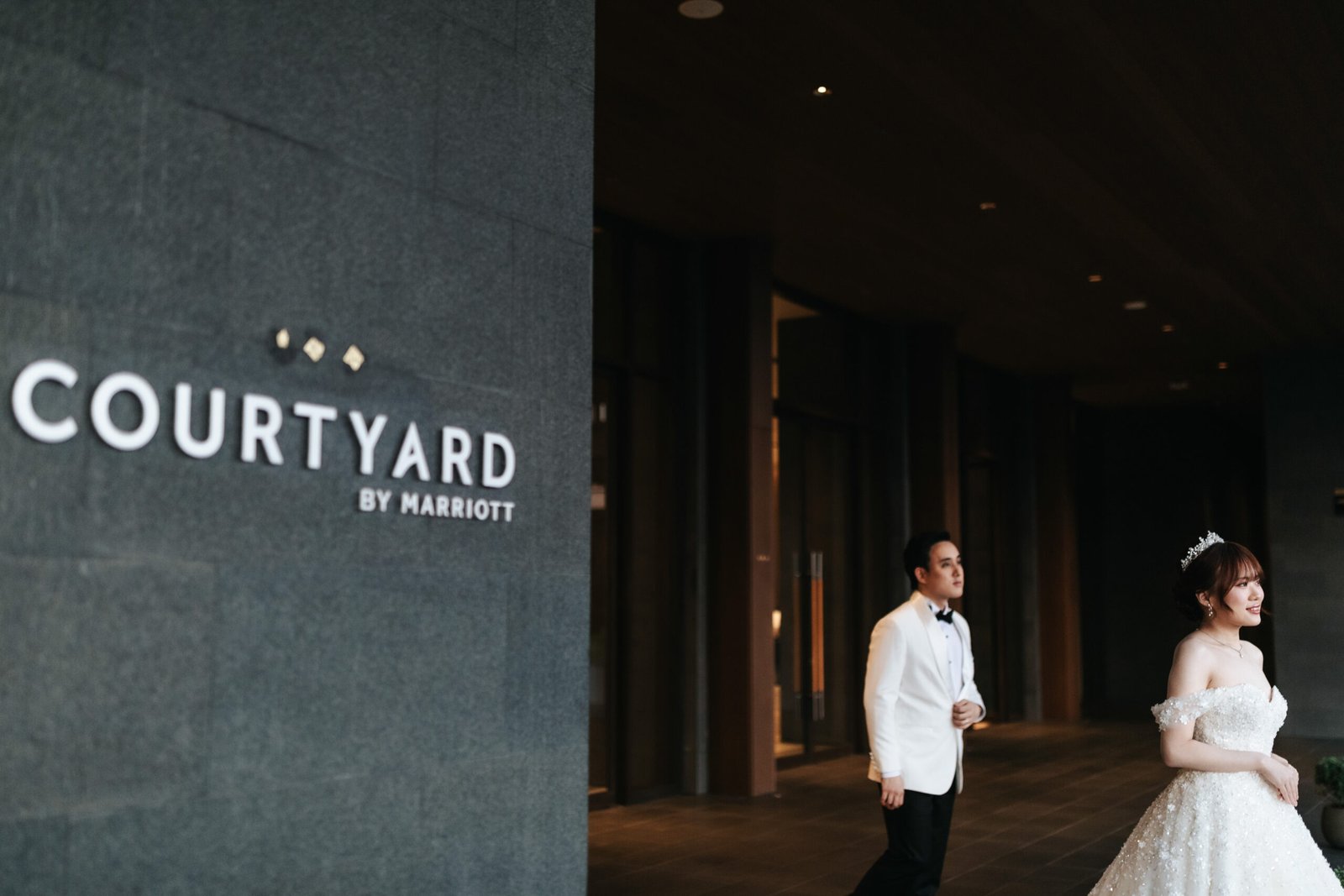 Wedding Ceremony Bride & Groom: K. New and K. Term Location: Courtyard by Marriott Photographer: NINEFOTO