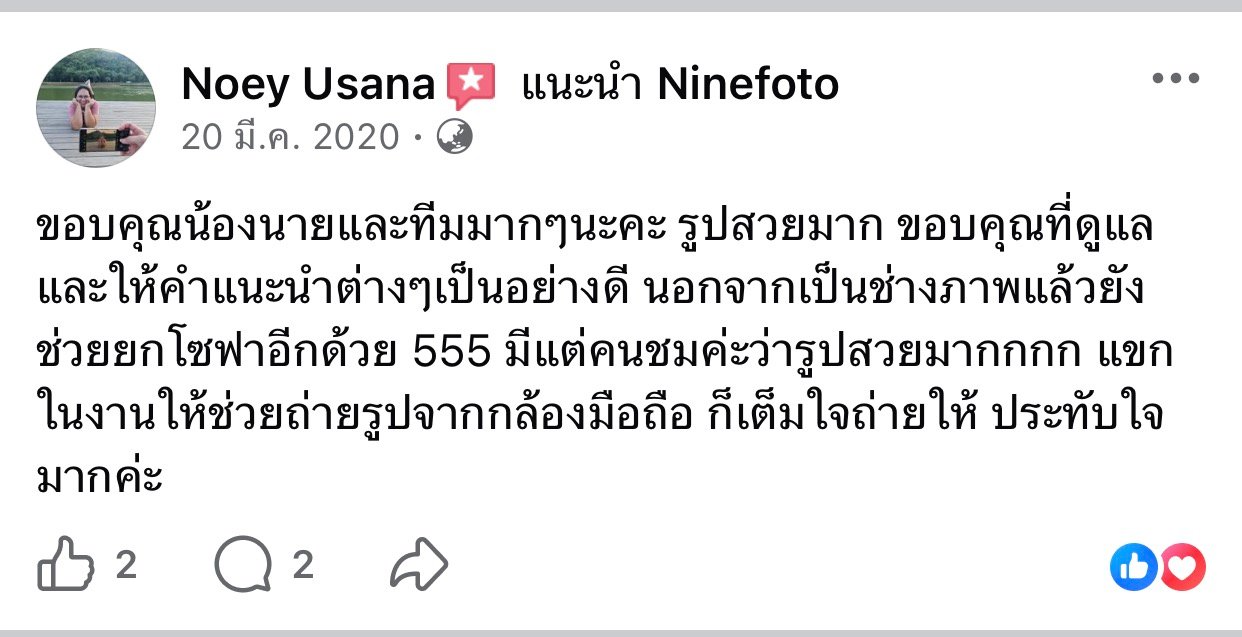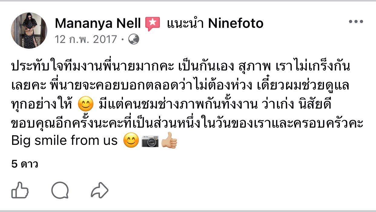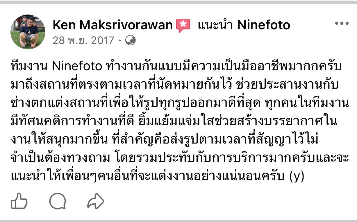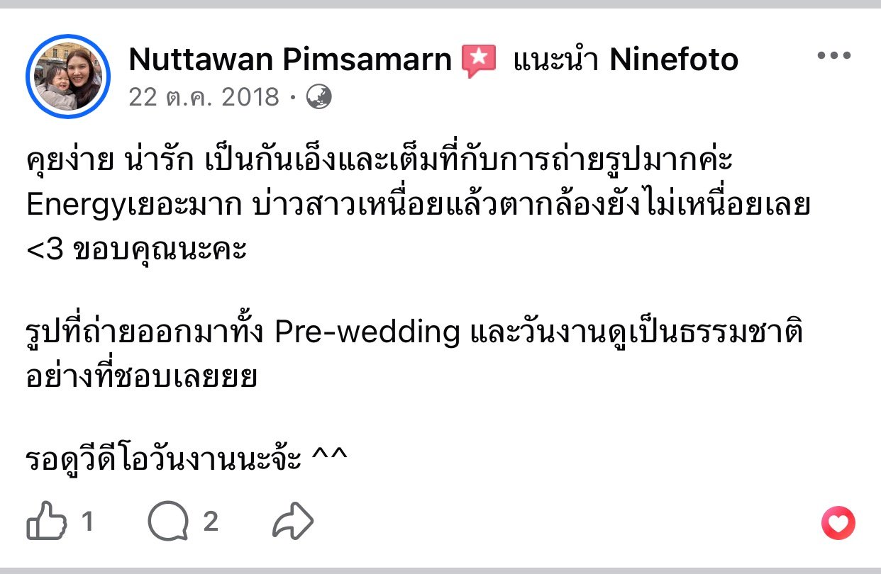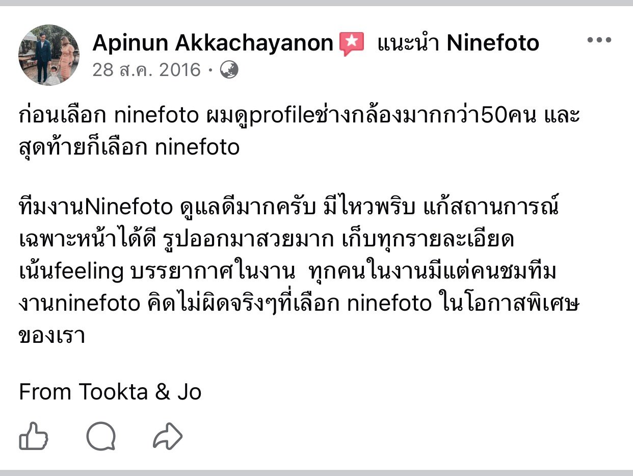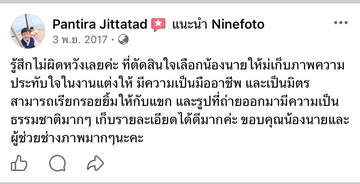 ขอแสดงความยินดีกับคู่บ่าวสาว และขอขอบคุณที่ไว้ใจให้ทีมช่างภาพ NINEFOTO ดูแลถ่ายภาพงานแต่งงานของคุณ
