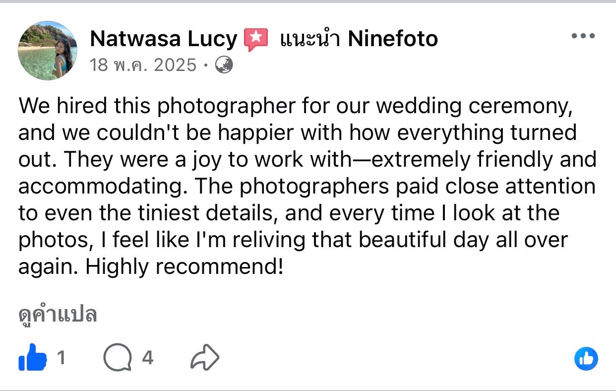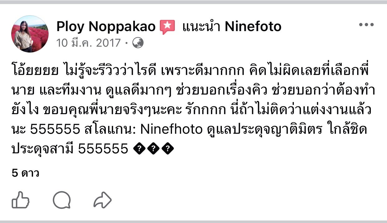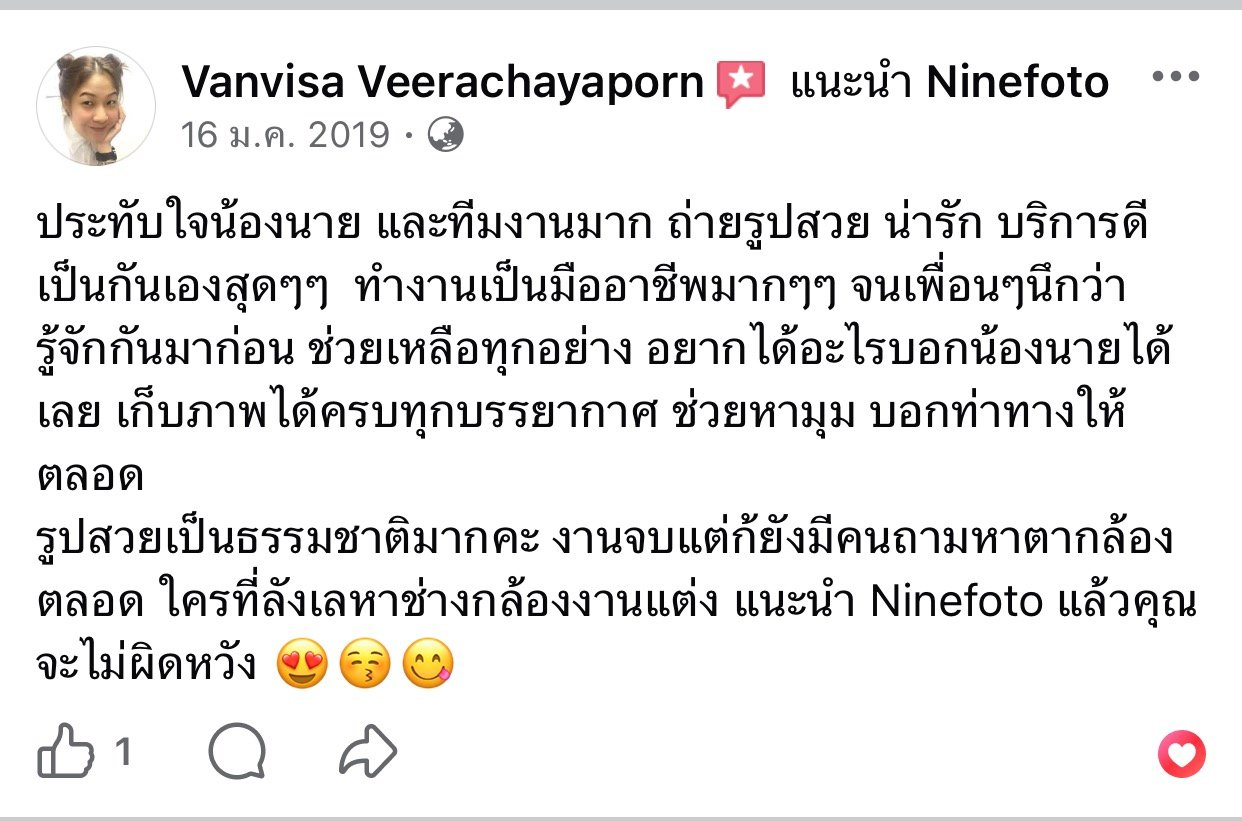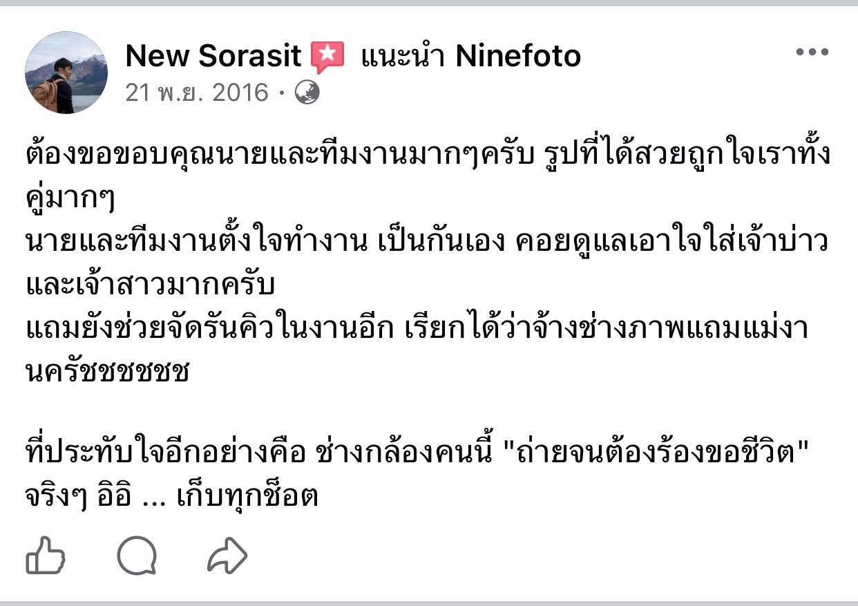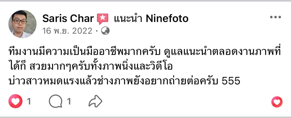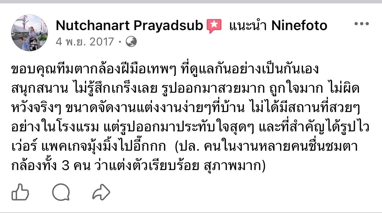 ขอแสดงความยินดีกับคู่บ่าวสาว และขอขอบคุณที่ไว้ใจให้ทีมช่างภาพ NINEFOTO ดูแลถ่ายภาพงานแต่งงานของคุณ