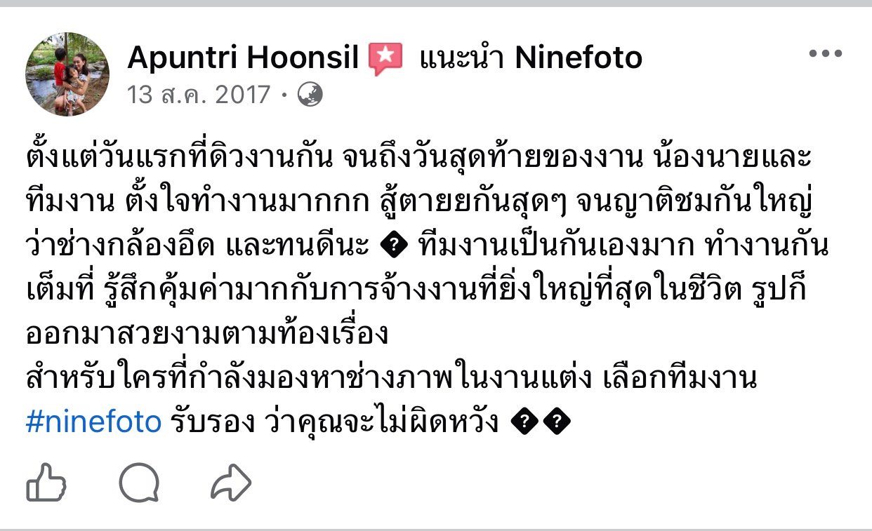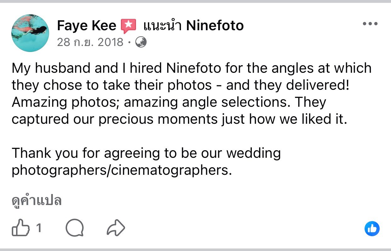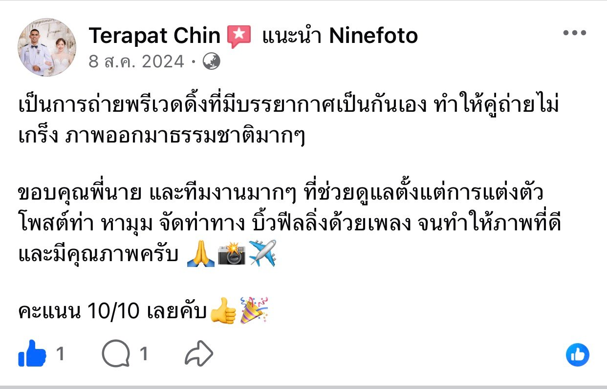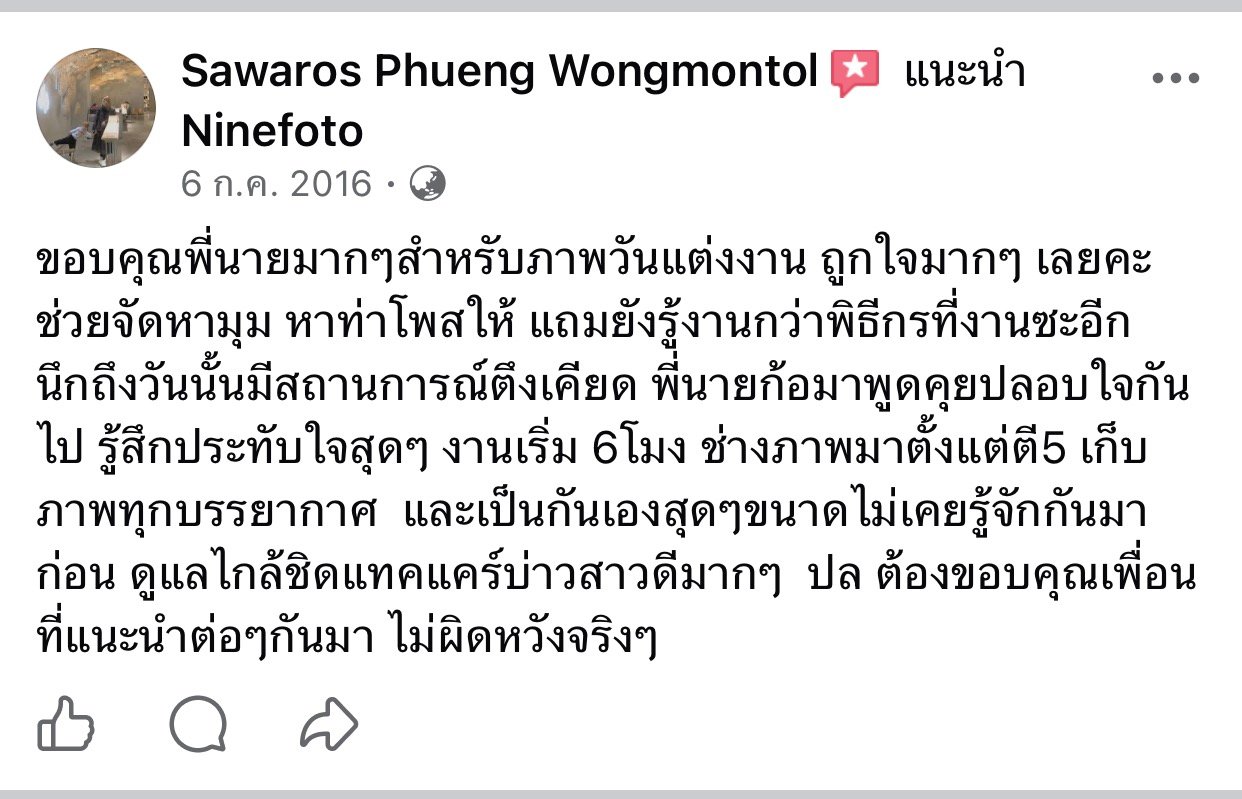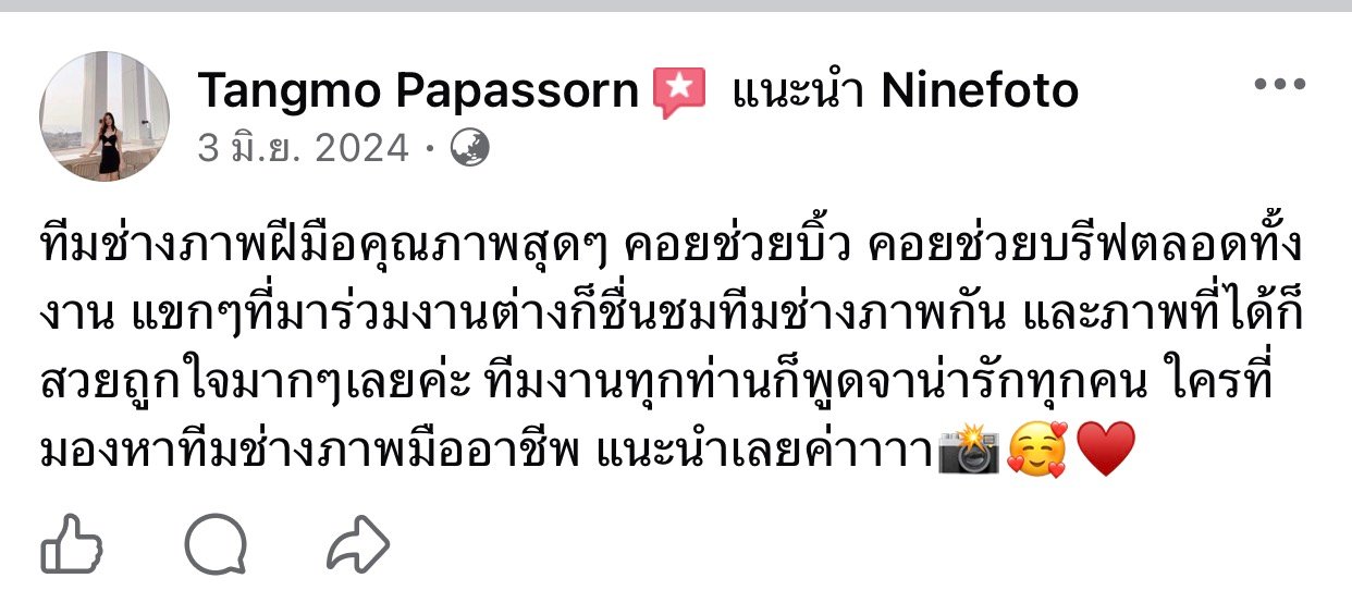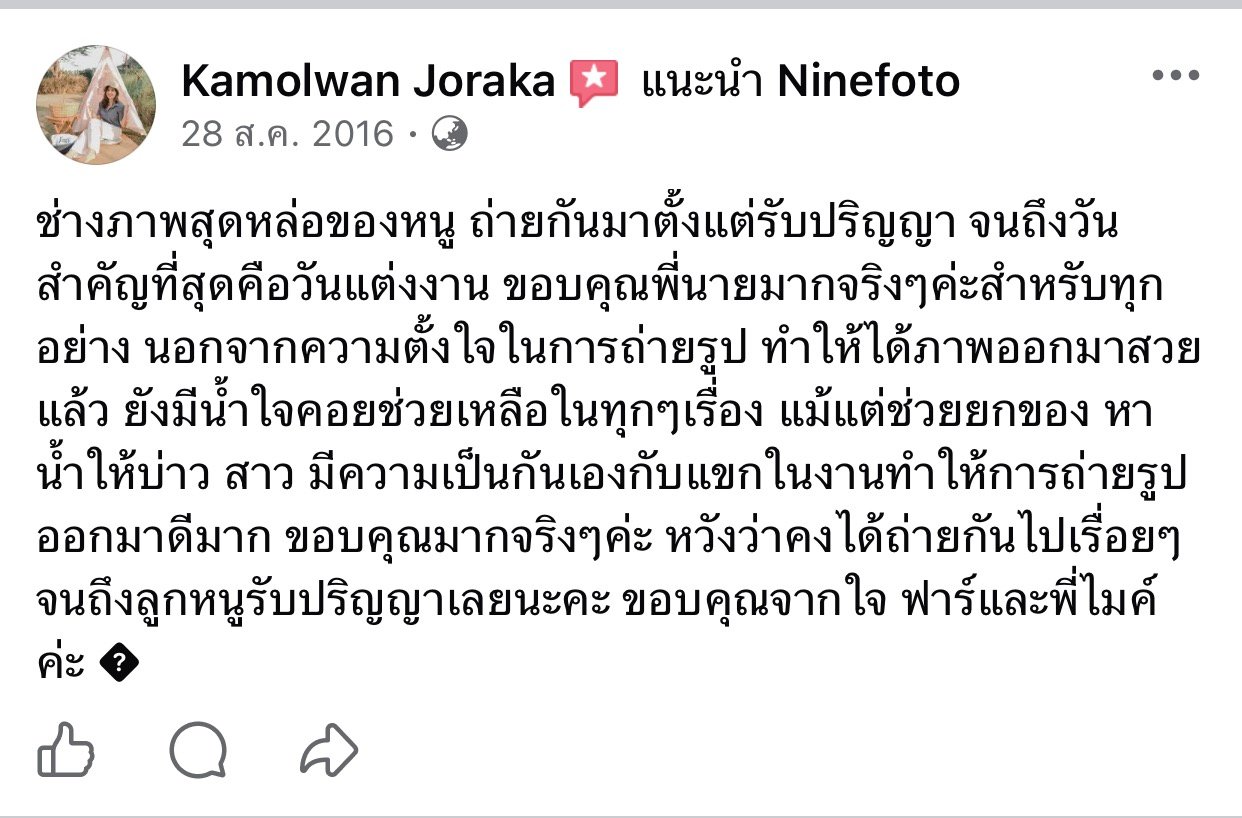 ขอแสดงความยินดีกับคู่บ่าวสาว และขอขอบคุณที่ไว้ใจให้ทีมช่างภาพ NINEFOTO ดูแลถ่ายภาพงานแต่งงานของคุณ