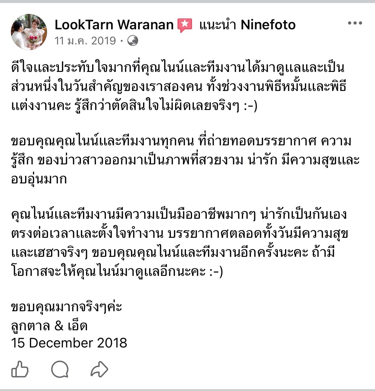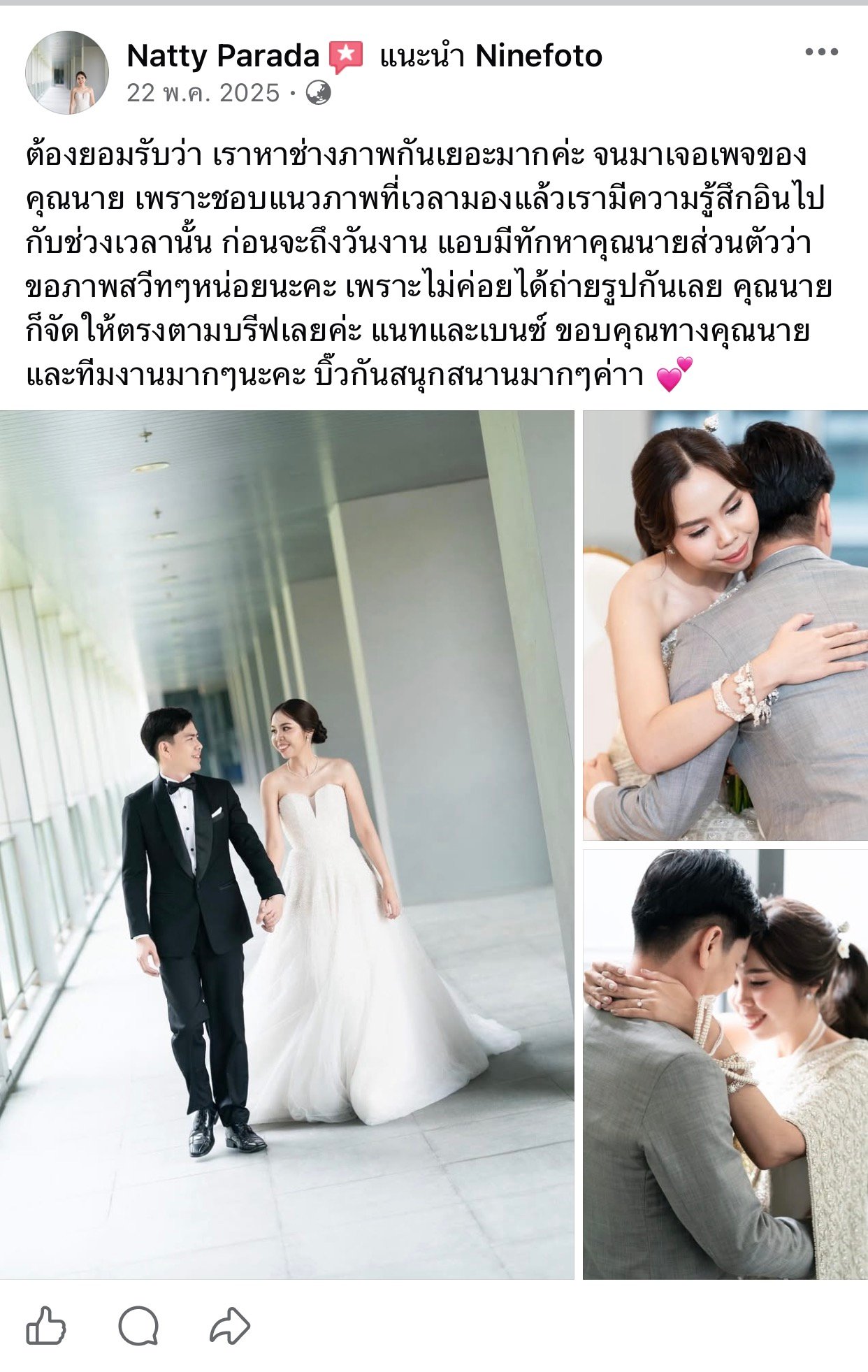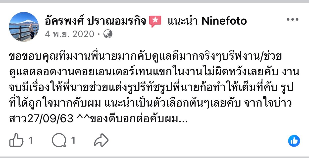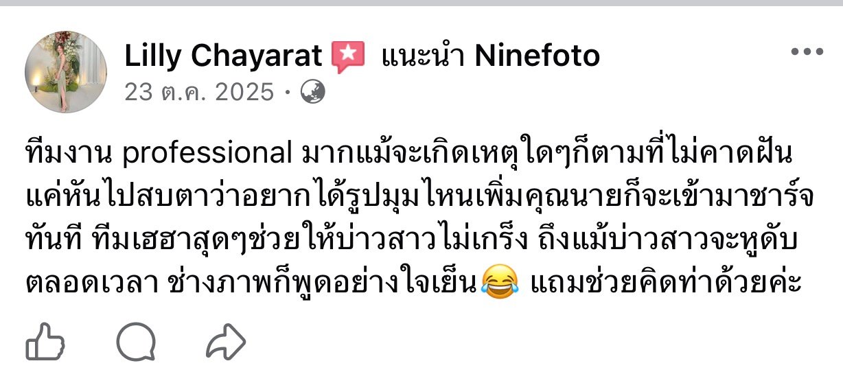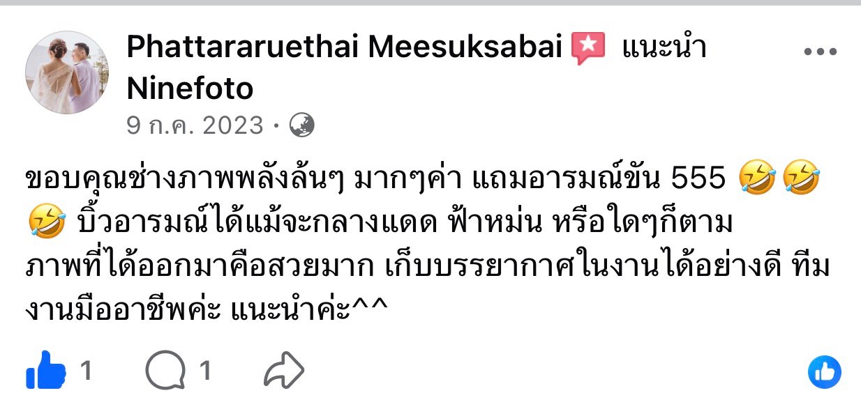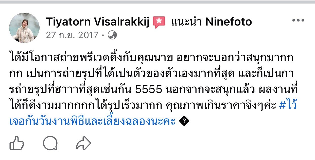 ขอแสดงความยินดีกับคู่บ่าวสาว และขอขอบคุณที่ไว้ใจให้ทีมช่างภาพ NINEFOTO ดูแลถ่ายภาพงานแต่งงานของคุณ
