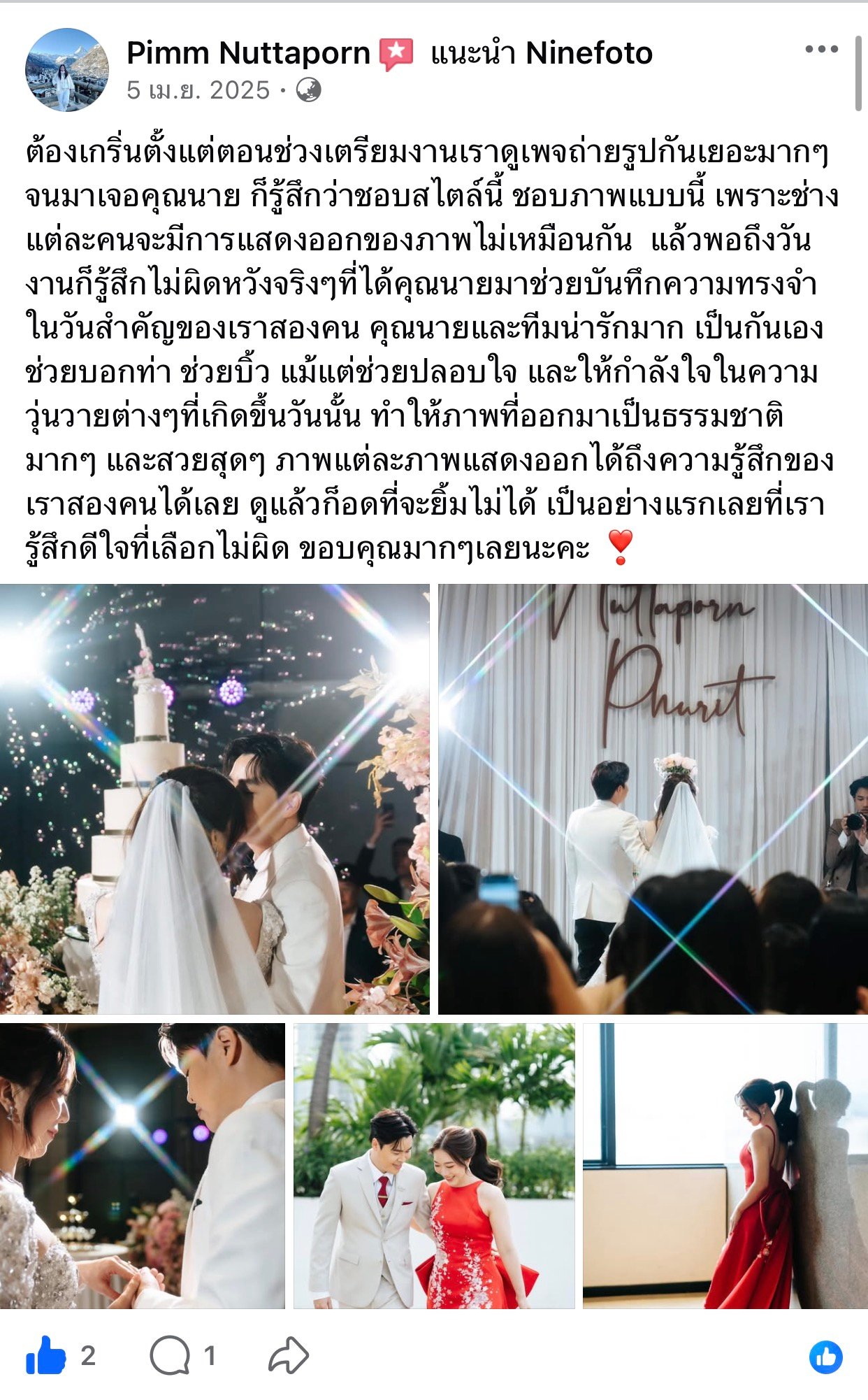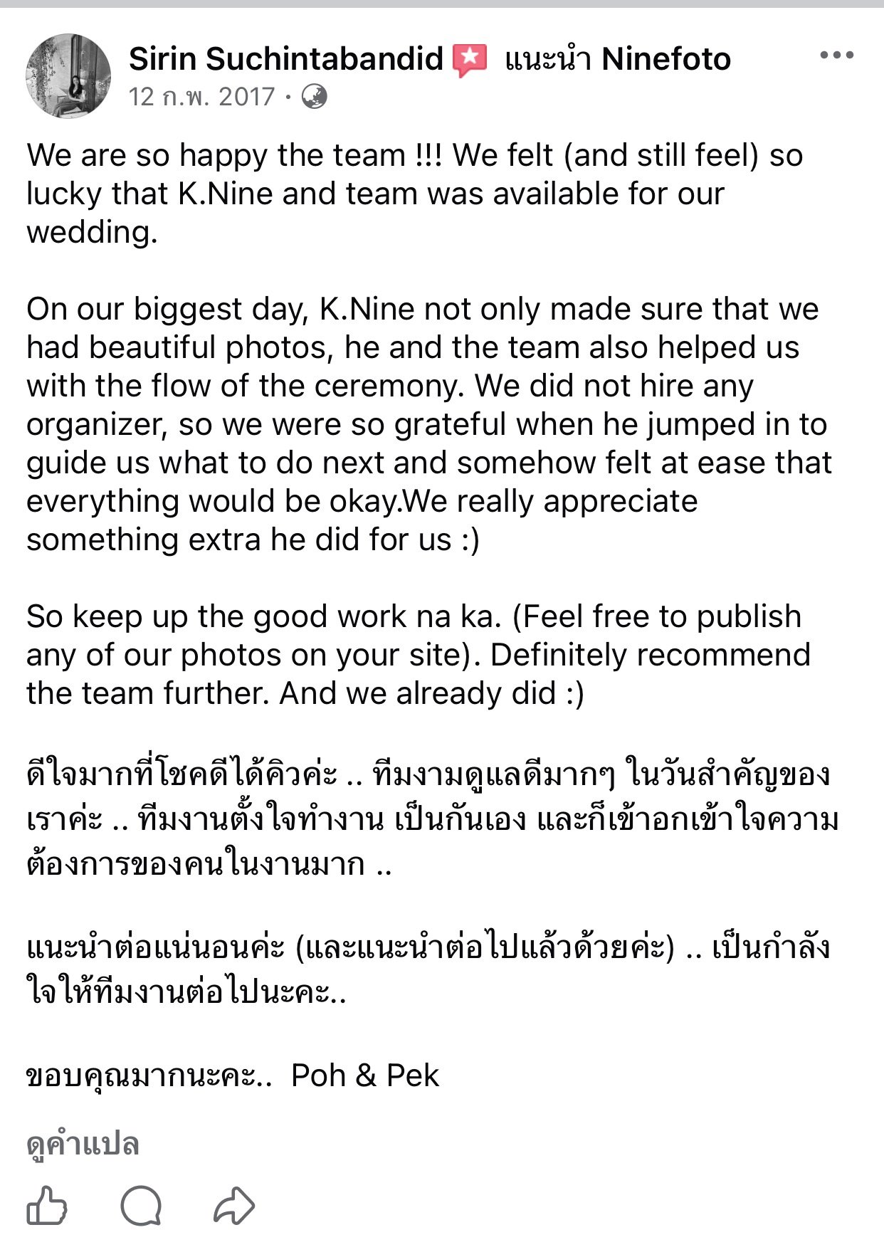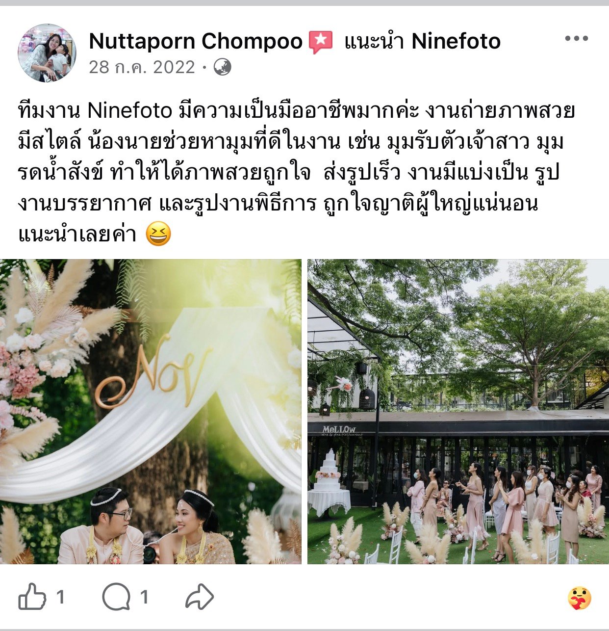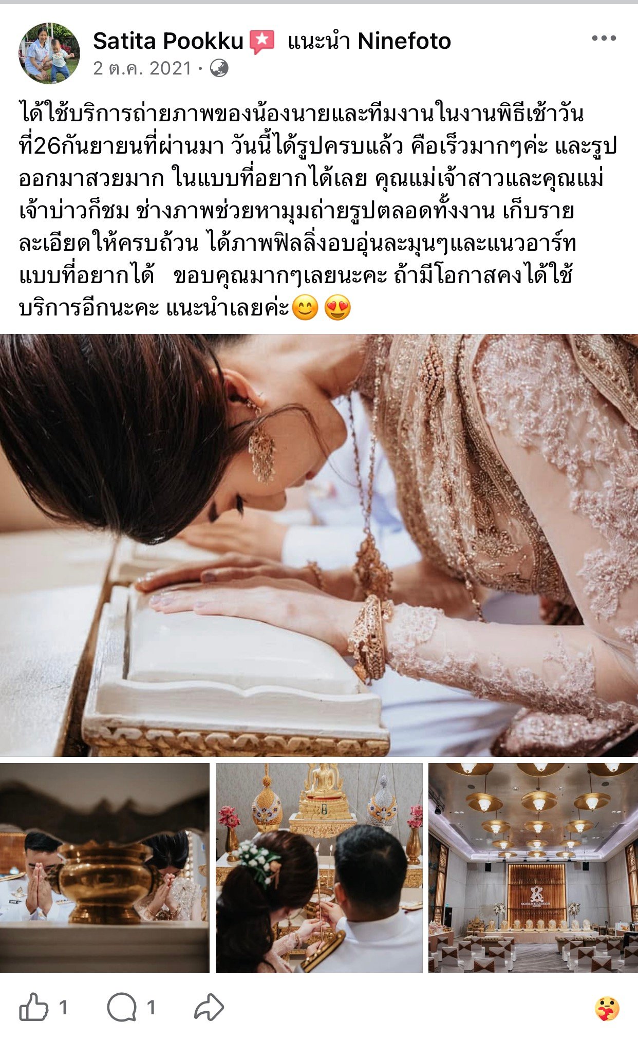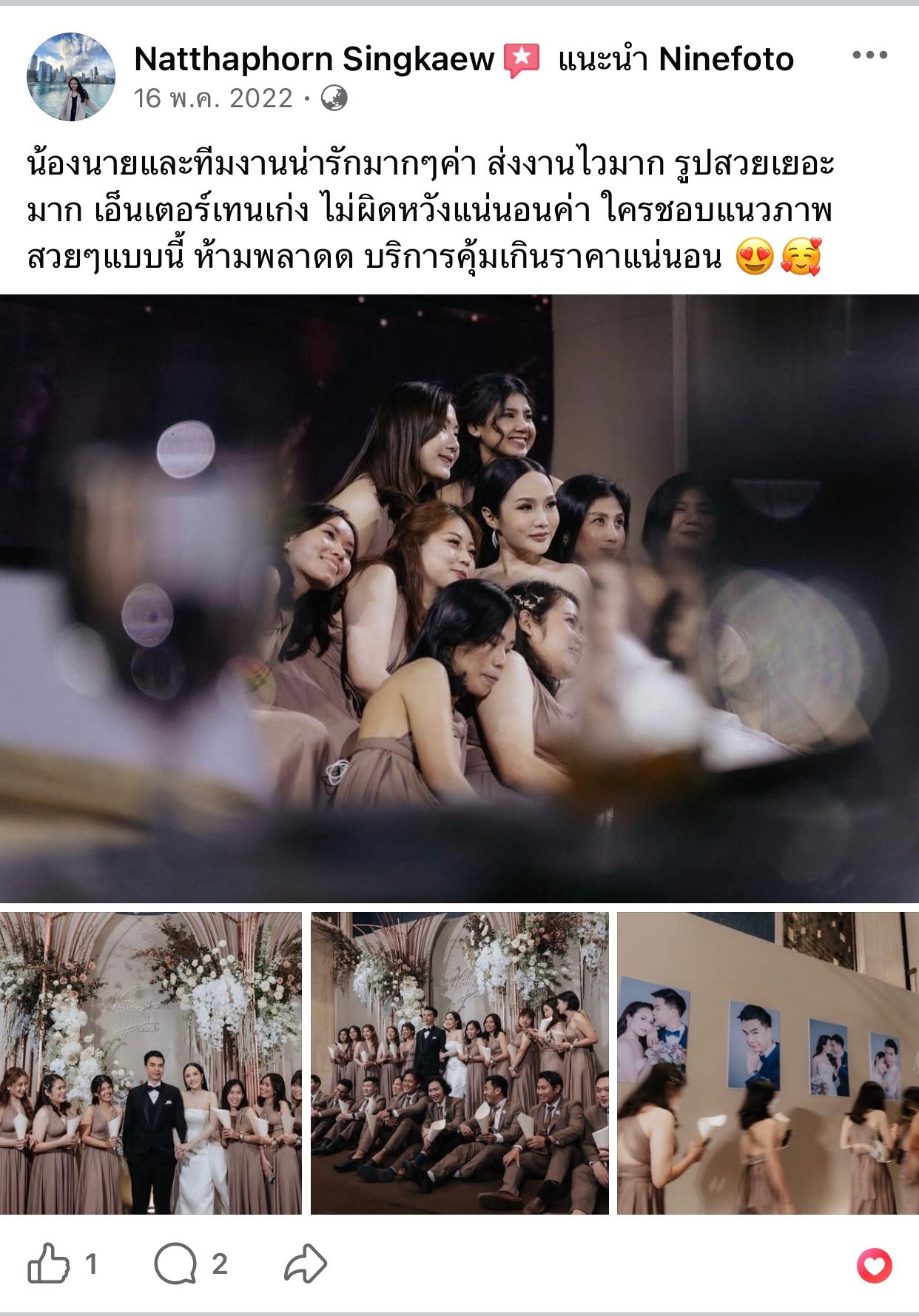 ขอแสดงความยินดีกับคู่บ่าวสาว และขอขอบคุณที่ไว้ใจให้ทีมช่างภาพ NINEFOTO ดูแลถ่ายภาพงานแต่งงานของคุณ