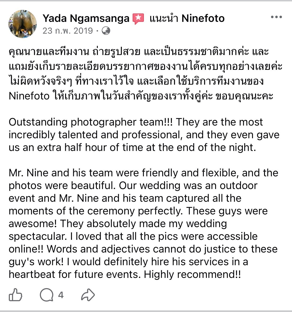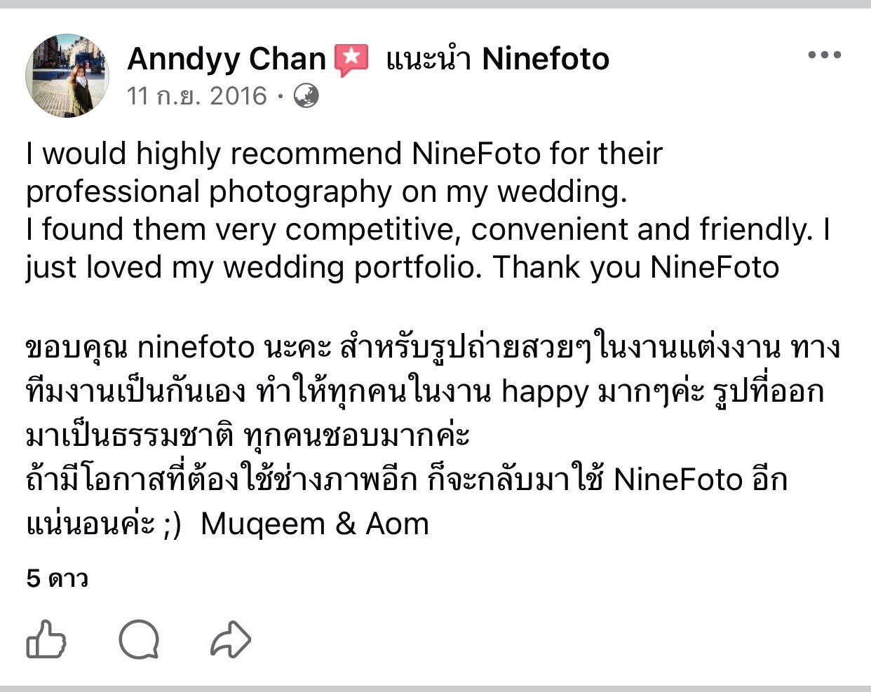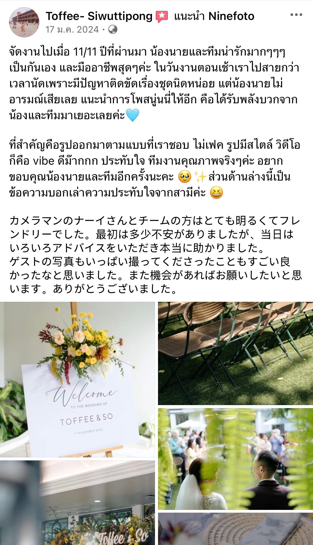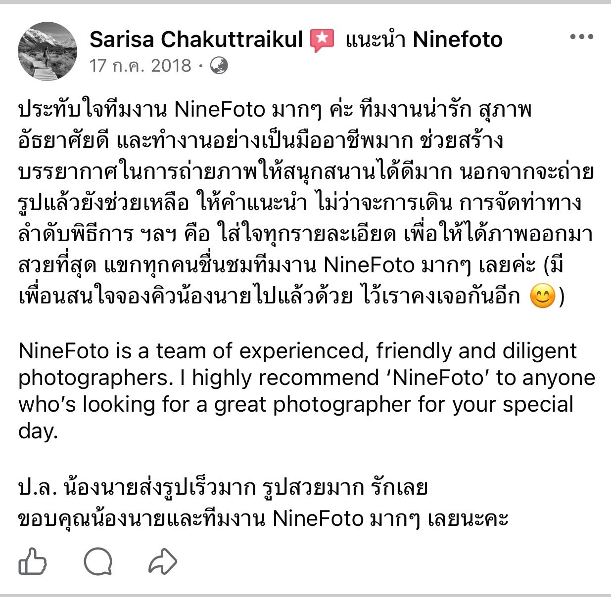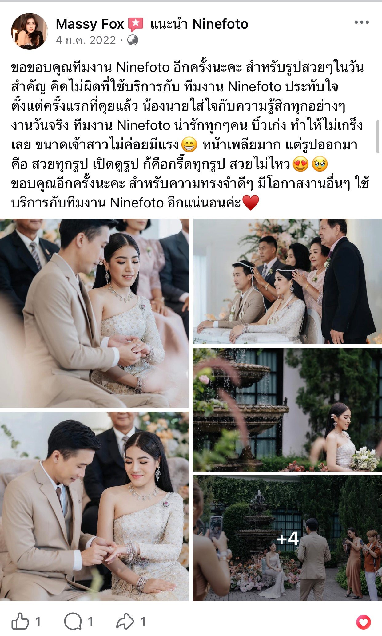 ขอแสดงความยินดีกับคู่บ่าวสาว และขอขอบคุณที่ไว้ใจให้ทีมช่างภาพ NINEFOTO ดูแลถ่ายภาพงานแต่งงานของคุณ